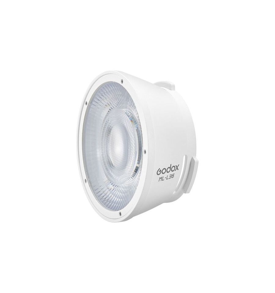 Este reflector de lente de 36° de Godox es un valioso modelador de luz que amplía las capacidades de su luminaria LED ML100Bi. Este modificador tiene un ángulo de haz de 36° y cuenta con una montura Godox, lo que le permite reemplazar el reflector de lente de 15° que viene con el ML100B y modificar su dispersión del haz.