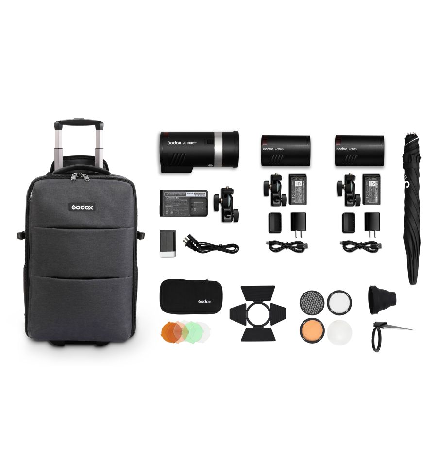 Extremadamente compacto y ligero, el kit de 3 luces AD100Pro AD300Pro de Godox contiene todo lo que el fotógrafo viajero necesita para una iluminación con calidad de estudio mientras dispara en exteriores.