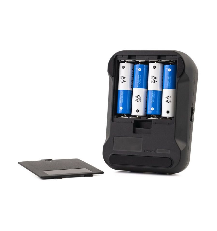 <li>4 h con 4 pilas AA o alimentación USB-C</li>