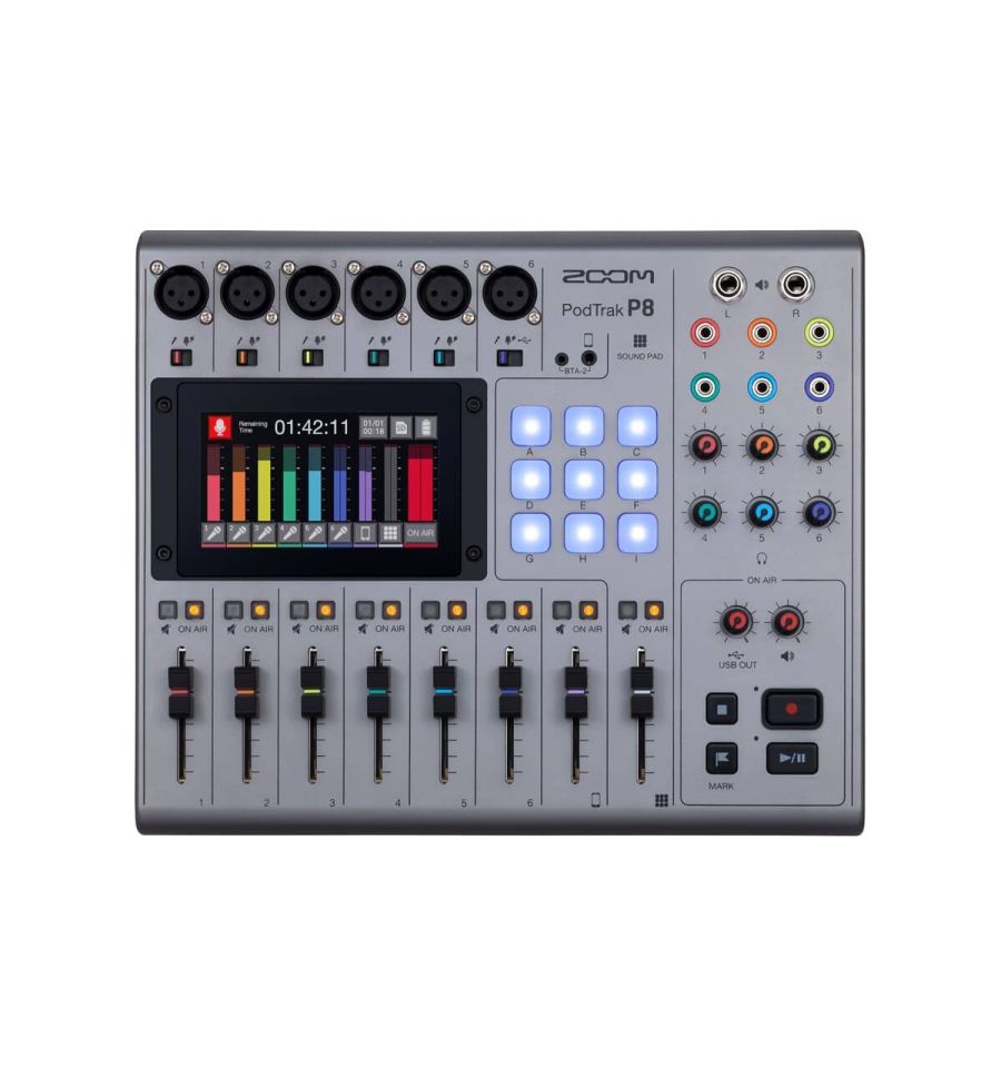 El Zoom PodTrak P8 es fácil de usar y puede manejar los podcasts más ambiciosos. Con todas las funciones que necesita para grabar, editar y mezclar, el PodTrak P8 es su estudio de podcast completo. La interfaz de pantalla táctil a color hace que la supervisión, el ajuste y la edición a bordo sean fluidos. Todo lo que necesita está a un toque de distancia.