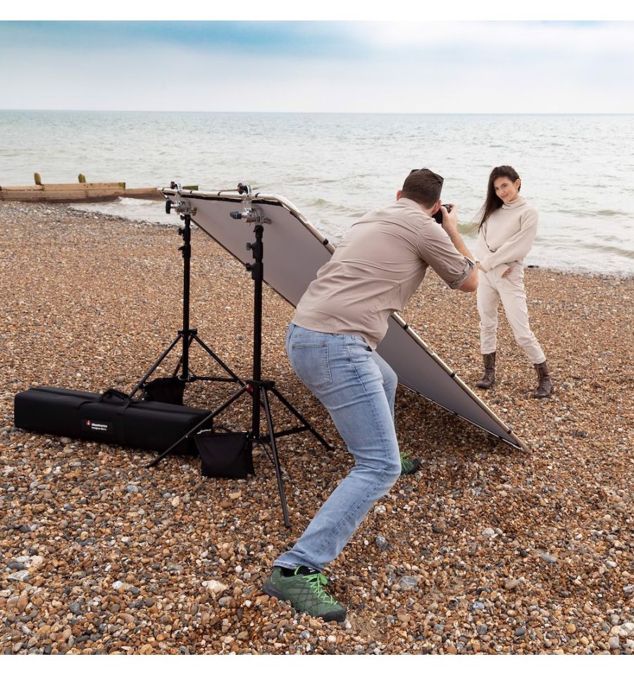 El kit Pro Scrim 'Todo en uno' incluye todos los componentes esenciales que requieren los creadores de imágenes para controlar su montaje de iluminación mediante el rebote, la difusión o el marcado de sus fuentes de luz.