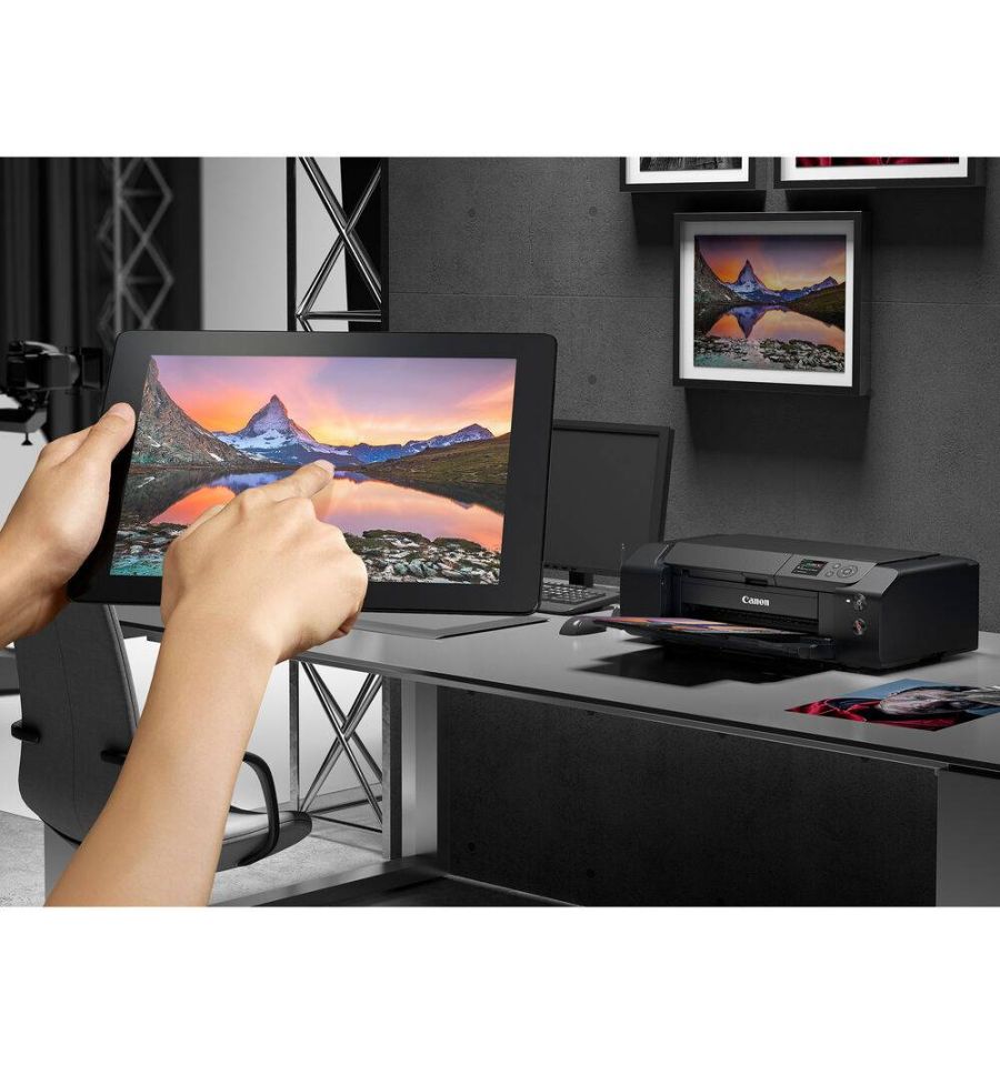 La impresora de inyección de tinta fotográfica profesional imagePROGRAF PRO-300 de 13" de Canon lo tiene cubierto, ya sea un aficionado avanzado, un fotógrafo profesional o un artista gráfico. Con un sistema de tinta LUCIA PRO de 9 colores, esta impresora fotográfica de 13" de ancho produce impresiones en color y en blanco y negro de calidad con gradaciones detalladas y una amplia gama de colores.