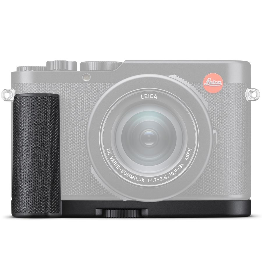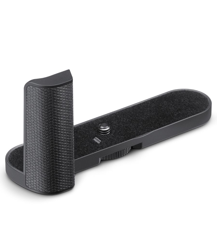 Esta empuñadura se puede acoplar a la Leica D-Lux 8 para fotografiar cómodamente con una sola mano. Cuando se fija al cuerpo de la cámara, proporciona apoyo para la mano derecha y, por lo tanto, permite disparar de forma estable y segura incluso con una sola mano. La empuñadura está equipada con una rosca de 1/4″ para montarla en un trípode. No es posible utilizar la empuñadura en combinación con una media funda en la Leica D-Lux 8.
