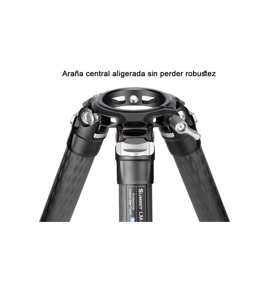 Trípode Leofoto LM-364C Summit sin columna central. Esta fabricado en carbono 10x capas y aluminio aeronáutico 6061 / 7075. Tiene 4 secciones. Patas con movimiento independiente.