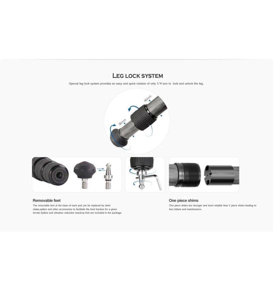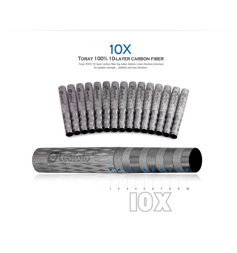 Este trípode de carbono Leofoto LS-402C está hecho en carbono. Fabricado en carbono Toray 10x capas y aluminio aeronáutico 7075. Tiene 2 secciones con movimiento independiente.