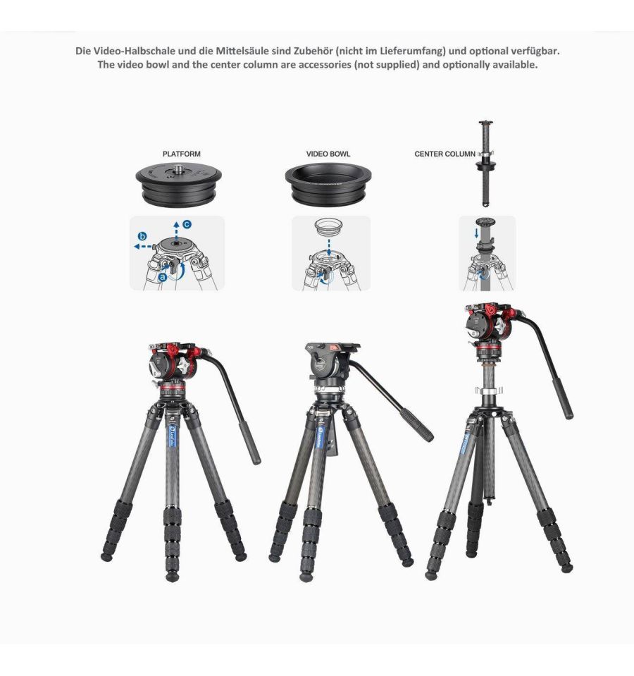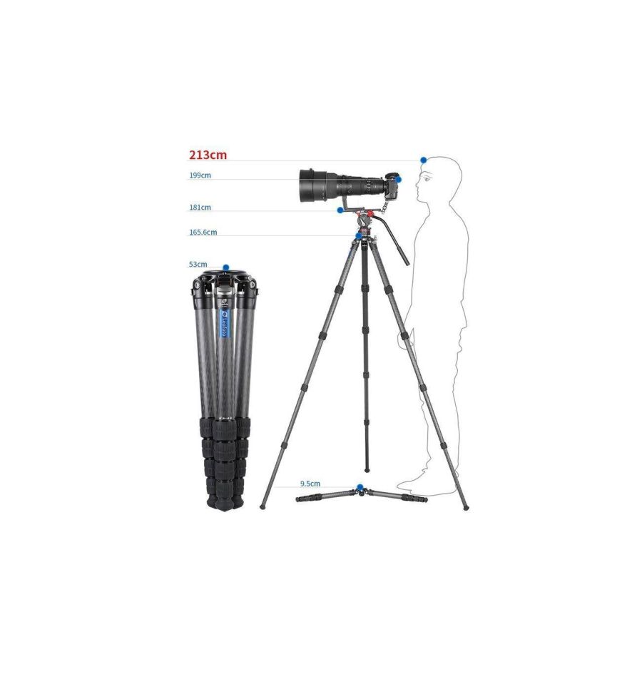 Este trípode de carbono Leofoto LS-405C está hecho en carbono. Fabricado en carbono Toray 10x capas y aluminio aeronáutico 7075. Tiene 5 secciones con movimiento independiente.