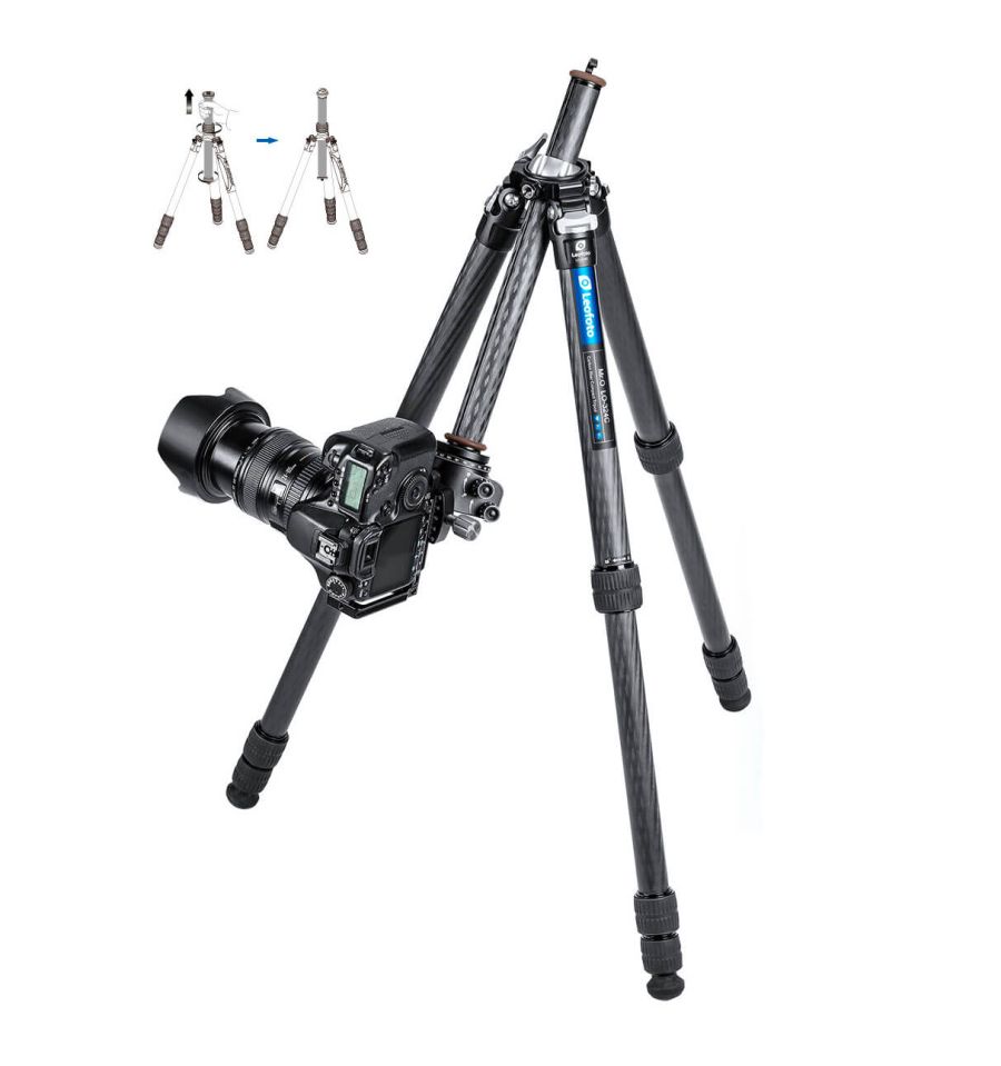 Trípode de carbono Leofoto LO-324C de la serie Mr.O con columna central orientable y extraible con nivelador. En carbono 10 capas y aluminio 6061-T6. Diámetro de los tubos: 32 / 28 / 25 / 22 mm. Incluye bolsa acolchada de transporte.