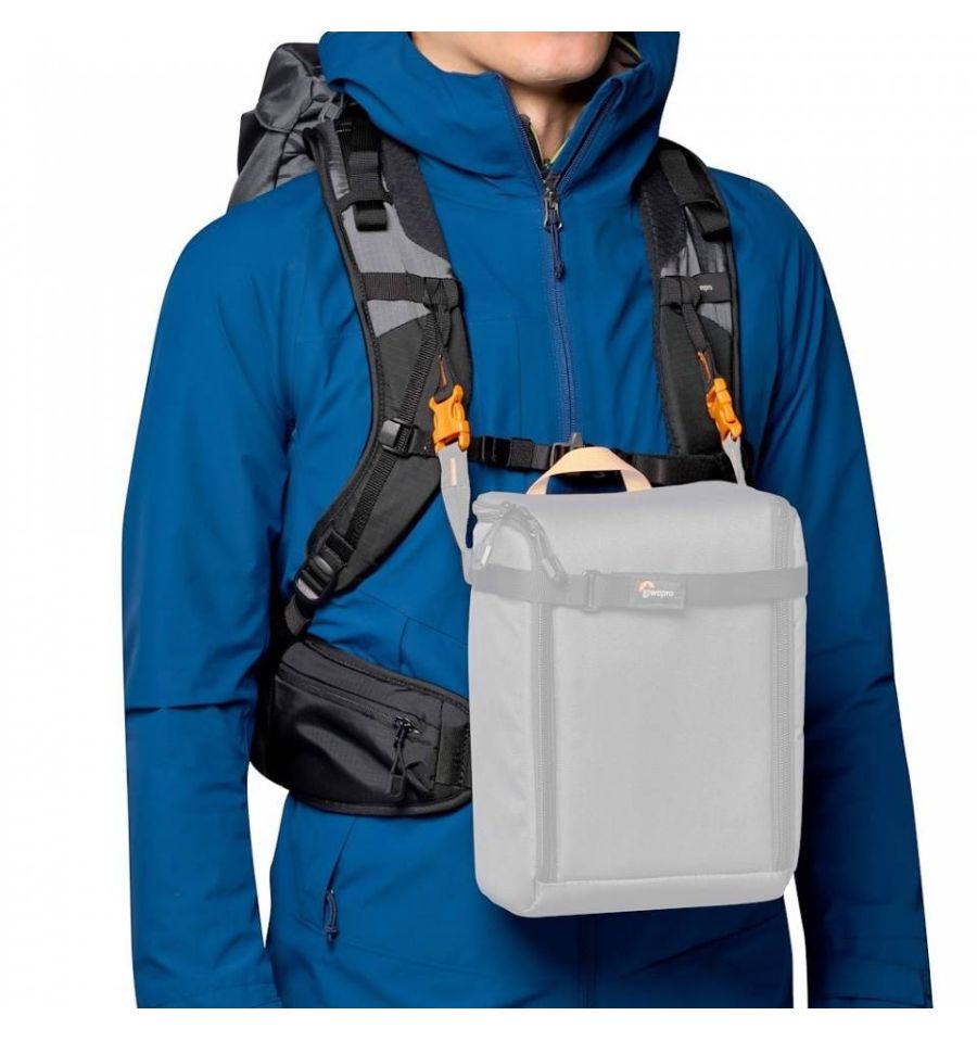 El soporte para smartphone se puede fijar en la correa de hombro de una mochila Lowepro o utilizar con la correa elástica para llevarlo como riñonera. La correa para hombro se puede fijar mediante los conectores a un maletín de cámara GearUp (no incluido) o directamente a una cámara. Los dos conectores de correas permiten fijar tu cámara o tu maletín de cámara GearUp en la correa de hombro de la mochila Lowepro.