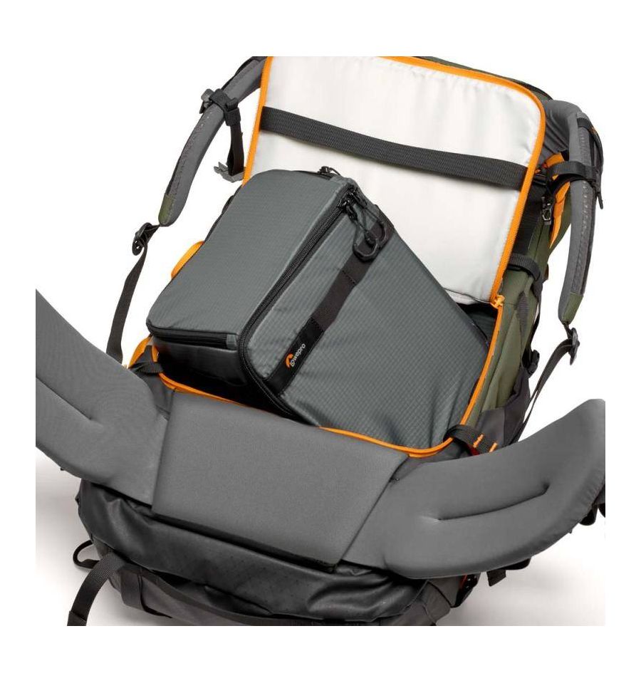 La PhotoSport PRO incluye un estuche GearUp PRO XL modular, al cual puedes acceder desde el frontal o desde la parte trasera. Este estuche no solo sirve como un compartimento de cámara extraíble, sino que también proporciona protección adicional contra impactos y humedad. Gracias a este sistema modular, podrás llevar solo el equipo necesario en cada aventura. Además, una vez en el campamento base, puedes quitar el GearUp Pro XL de la mochila y llevarlo solo al tomar fotografías.