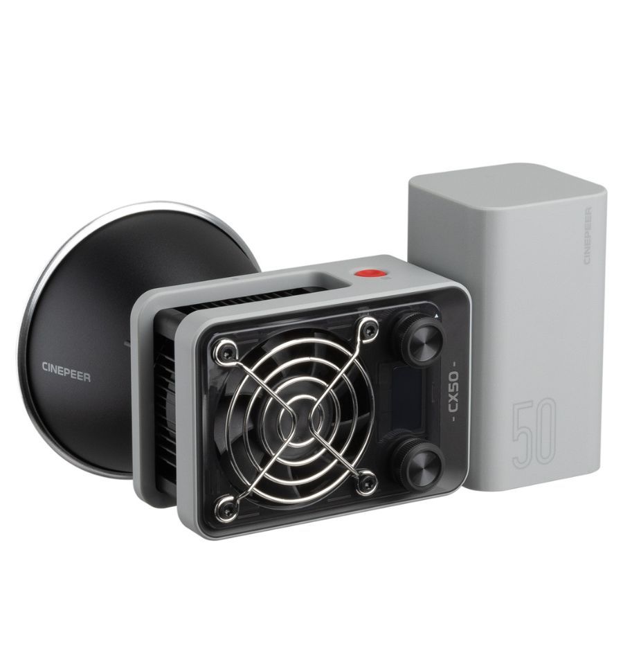El Cinepeer CX50 RGB es un foco LED compacto, 50% más pequeño que otros de 50 watts, que ofrece un rendimiento de color preciso y uniforme, ideal para situaciones que requieren una iluminación rica y envolvente.