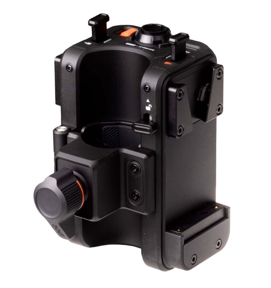 Incluye un diseño de placa para baterías con montaje en V, lo que lo hace compatible con las baterías estándar de ese tipo utilizadas en la industria. Está diseñado de forma muy integrada para minimizar el uso de cables. La batería cumple una doble función: sirve como empuñadura y como fuente de energía. Esto elimina la carga que normalmente supone la alimentación, transformando la forma en que se utiliza la iluminación profesional.