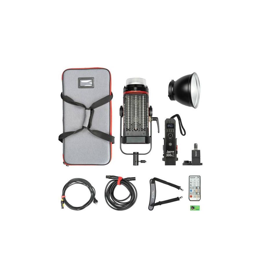 Aputure utiliza la tecnología Chip on Board (COB) para producir una temperatura de color de 5600 K, con un consumo de energía de solo 350 W, mientras emite hasta 45 000 lux de luz con un reflector eficiente a una distancia de 3.3 '.