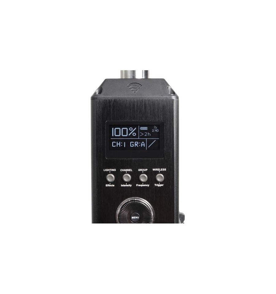 Además de la rueda de control, el 300d Mark II también cuenta con compatibilidad DMX512, un control remoto inalámbrico Aputure de 2.4 GHz con un botón de alternancia FX y la capacidad de ser controlado por la aplicación Sidus Link usando un protocolo de red de malla Bluetooth.
