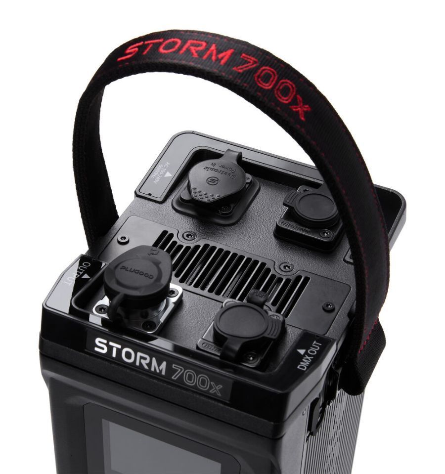 Su construcción resistente cuenta con certificación IP65, preparada para polvo e inclemencias, adecuada incluso para entornos exigentes. La STORM 700x utiliza un sistema activo de ventilación con cuatro modos: smart, high, medium y silent. La montura ProLock Bowens garantiza compatibilidad con numerosos modificadores opcionales y una fijación más segura y alineada ópticamente.