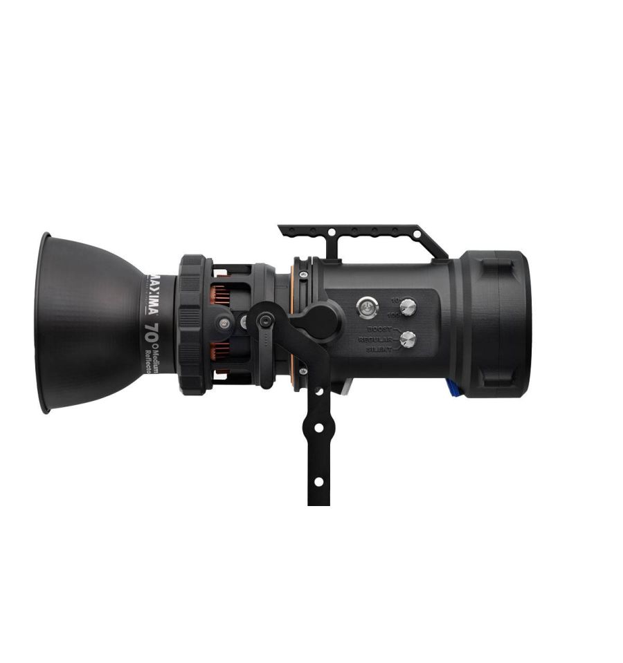 Maxima 6 ha sido concebido para permitir un funcionamiento rápido e impecable tanto en el estudio como en exteriores, gracias al cuerpo integrado todo en uno. Maxima 6 cuenta con controles analógicos para las funciones esenciales y funciones avanzadas accesibles a través de la aplicación iOS y Android .
