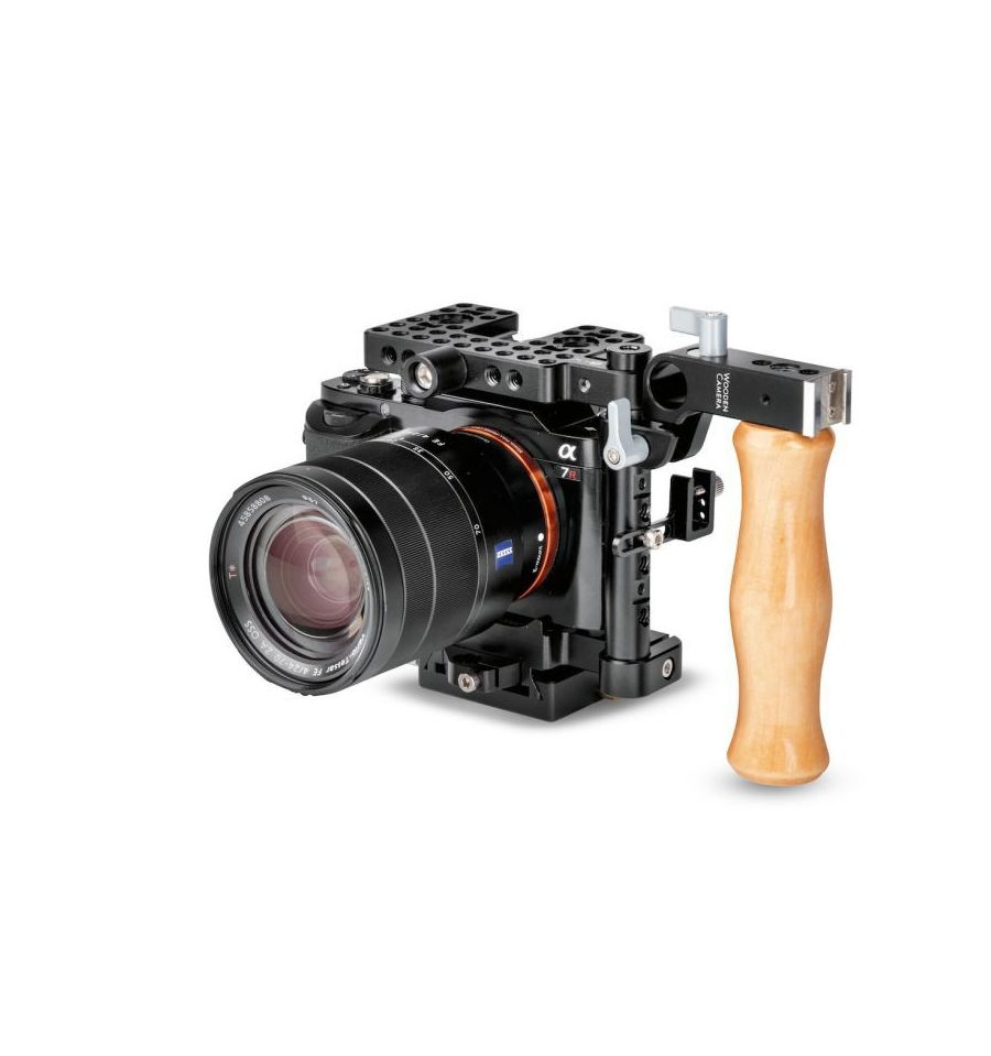 La jaula incluye un mango superior reversible que se puede reposicionar sobre el área de la lente cuando se usa un adaptador XLR. El asa también puede doblarse al empacar su bolso e incluso puede reconfigurarse en la varilla vertical izquierda de 15 mm para un agarre secundario. Incorporado en el mango está una montura de zapata fría y una abrazadera de tubo de 15 mm para montar cualquiera de los kits de montaje de UVF de cámara de madera utilizados con visores electrónicos de terceros.