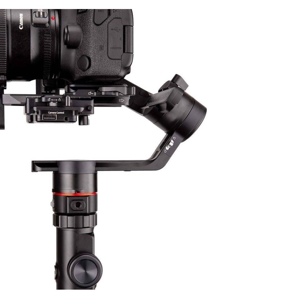 Incorpora un diseño de zapata de liberación rápida compatible con el estándar tipo Arca-Swiss, que permite a los usuarios montar rápidamente la cámara sin tener que recalibrar continuamente el gimbal. Es posible controlar el bloqueo de cada uno de los 3 ejes independientemente, para que sea más fácil recalibrar el gimbal cuando sea necesario, por ejemplo al cambiar de objetivo.