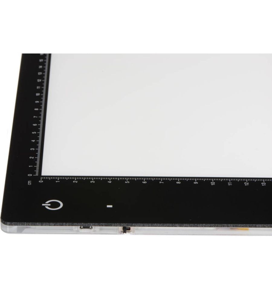 Base iluminada acrílica de alta calidad con una transmisión excepcionalmente uniforme en toda la gama del espectro visible. Carcasa exterior completamente metálica con pies no deslizantes en goma y la posibilidad de montar la mesa de luz en la pared.