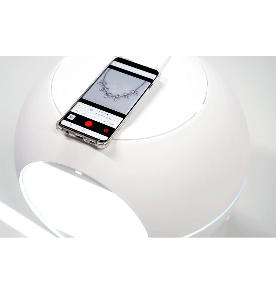 Para trabajar en cualquier sitio: todo lo necesario está dentro del Smart Dome. Con tapas desmontables e intercambiables para evitar reflejos. Gestionada desde la app, permite ajustar luminosidad, temperatura de color, giro de la plataforma base, exportación de imágenes, etc. todo desde el smartphone o el PC.