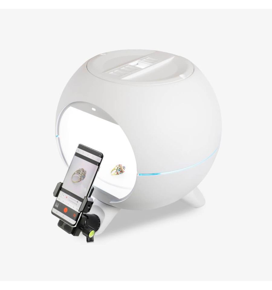 - Su forma única permite que los productos pequeños más reflectantes se iluminen uniformemente, lo que resulta ser complicado en la caja de luz cuadrada tradicional. Es compatible con todo tipo de dispositivos: smartphone o cámara DSLR / mirrorless.