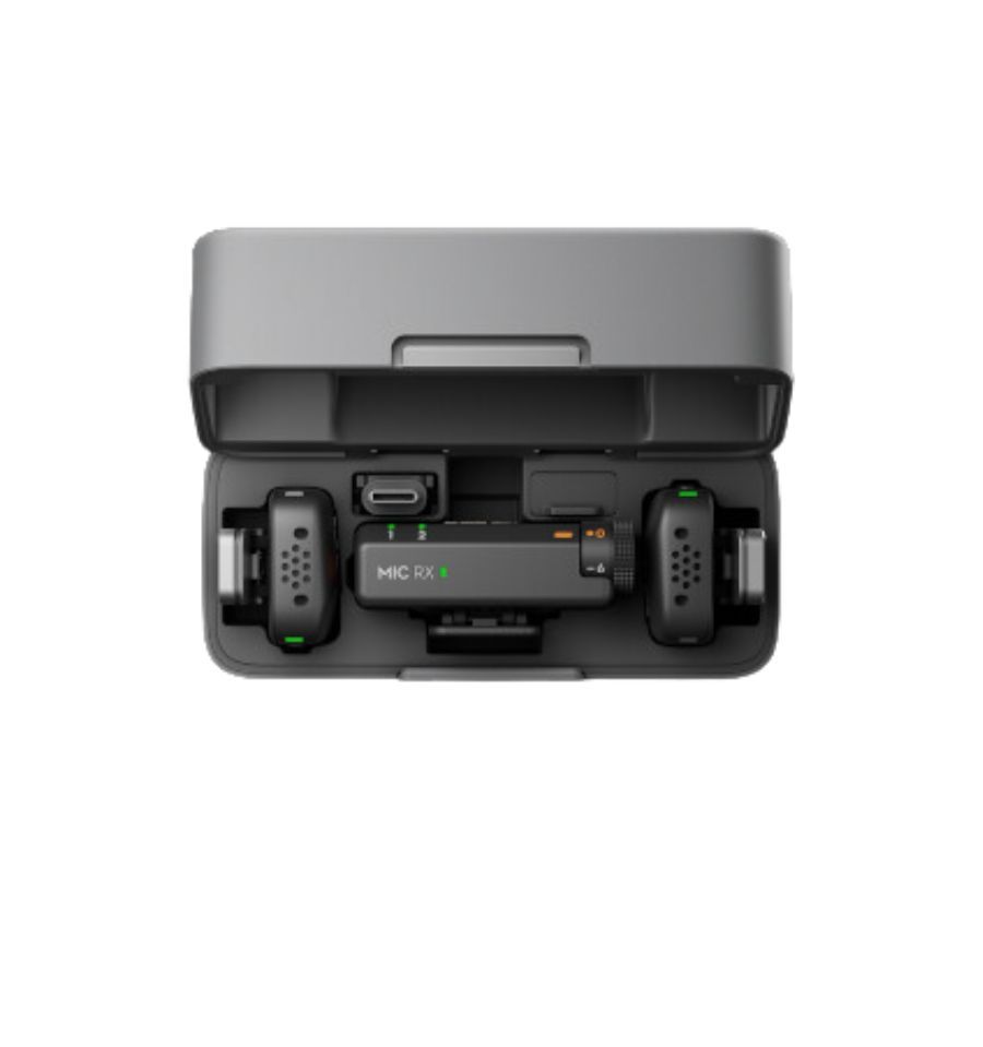 Tiempo de funcionamiento: Aprox. 11.5 horas (medido usando DJI Mic Mini (2TX + 1 RX) con la cancelación de ruido apagada, grabando audio a corta distancia sin interferencias, con el transmisor conectado al receptor y el receptor conectado a una cámara mediante el cable de audio para cámara (TRS de 3.5 mm))