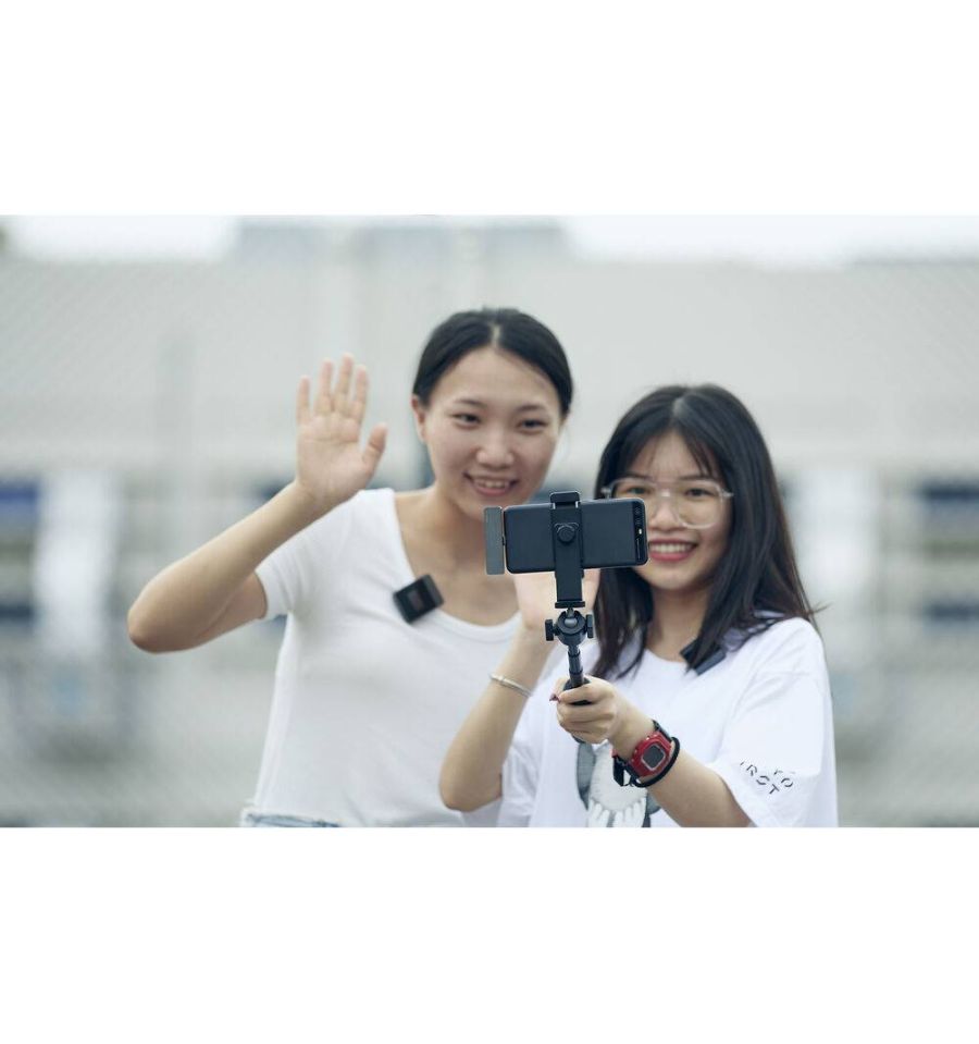 El receptor de dos canales se conecta al puerto USB de su teléfono, lo que le proporciona energía y facilita la grabación de videos con dos presentadores en la cámara a la vez mientras mantiene su equipo pequeño y liviano. El sistema se puede expandir con transmisores y receptores adicionales para permitir el uso de hasta 8 micrófonos en el set al mismo tiempo.
