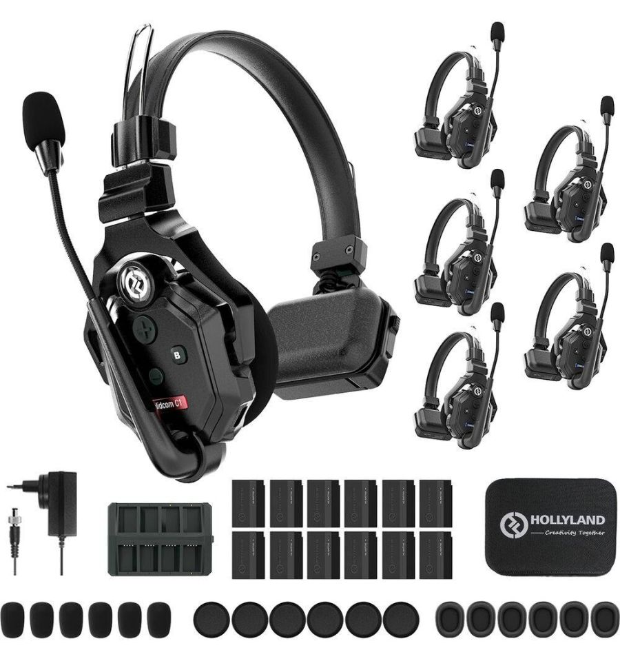 El Hollyland Solidcom C1-4S es un sistema de intercomunicación DECT inalámbrico full-duplex diseñado para proporcionar un audio nítido y comodidad de uso durante todo el día en un diseño verdaderamente inalámbrico sin necesidad de petaca ni concentrador. Esta configuración incluye 6 auriculares de un solo lado, 1 unidad maestra y 5 remotas, junto con baterías recargables, un cargador y accesorios. El sistema utiliza encriptación DECT 6.0 y tecnología de doble antena para garantizar una transmisión segura y confiable a un alcance de hasta 1000 pies, lo que lo hace muy adecuado para una variedad de aplicaciones, incluida la producción de películas, conciertos y eventos públicos.