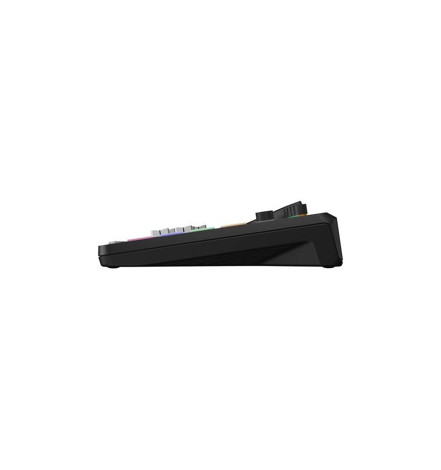 En lugar de las almohadillas de sonido del modelo original, el RODECaster Pro II tiene almohadillas SMART programables. Cada pad SMART puede activar archivos de audio como música o fragmentos de sonido, activar efectos especiales, enviar comandos MIDI a software o hardware, o ejecutar funciones de mezclador como fundidos, atenuación de música y pitidos.