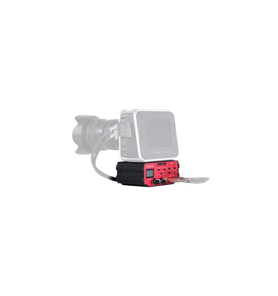 El SARAMONIC SR-PAX2 es un mezclador de audio activo de dos canales con preamplificador y alimentación phantom, especialmente diseñado para cámaras digitales sin espejo, cámara de cine de bolsillo Blackmagic Design y cámara DSLR con conector de micrófono.