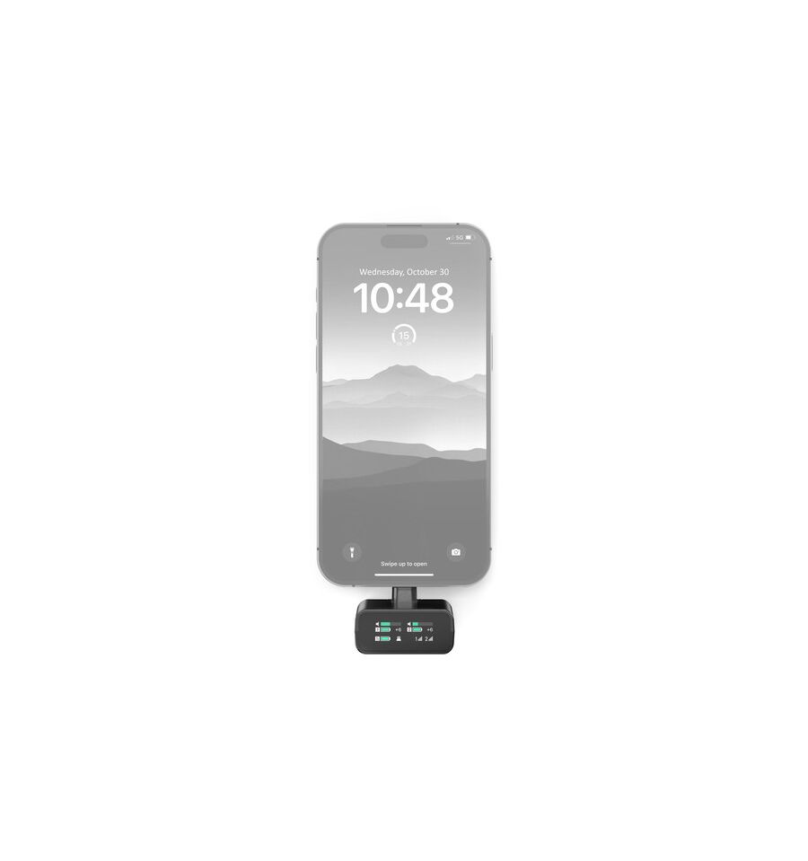 - El pequeño receptor de doble canal se puede montar en una cámara DSLR/sin espejo utilizando el adaptador de rosca de 1/4"-20 incluido o conectarse directamente a su teléfono inteligente, tableta o computadora portátil a través de los adaptadores Lightning y USB-C incluidos.