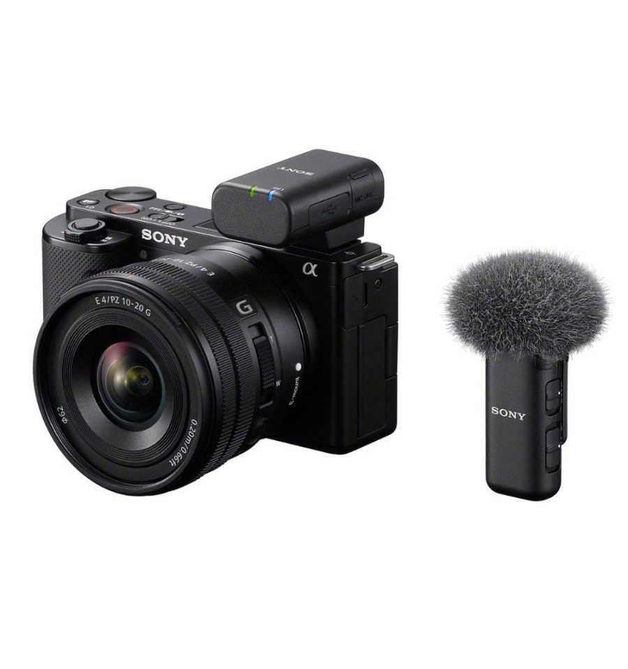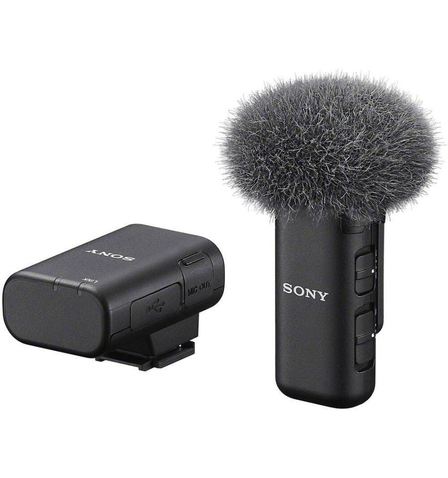 Graae entrevistas y vlogs de dos sujetos con su cámara Sony compatible con interfaz múltiple utilizando este sistema de micrófono inalámbrico para 2 personas Sony ECM-W3S, gracias a sus dos transmisores de clip con micrófonos incorporados y un receptor de doble canal con conexión de zapata de interfaz múltiple.