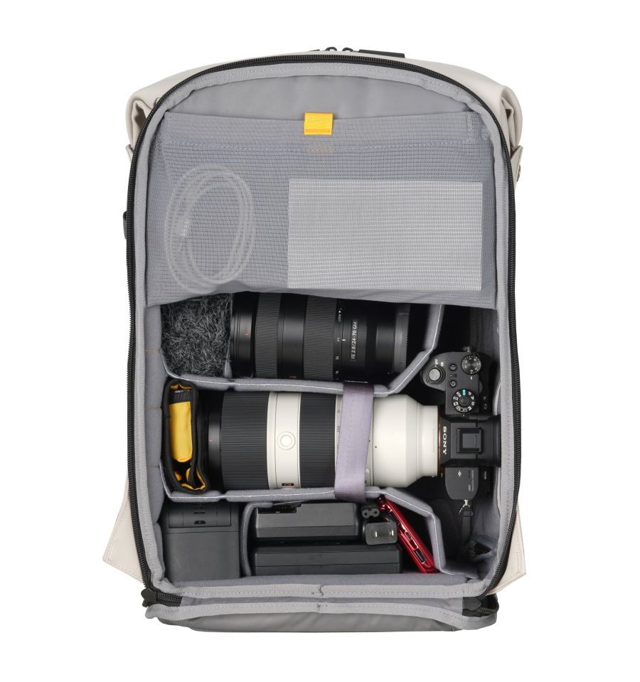 - Gran capacidad de equipo: Espacio para una cámara Mirrorless o DSLR con 3-4 objetivos, flash o incluso un dron DJI Mavic con sus accesorios.