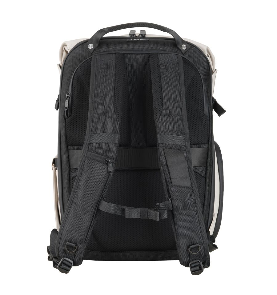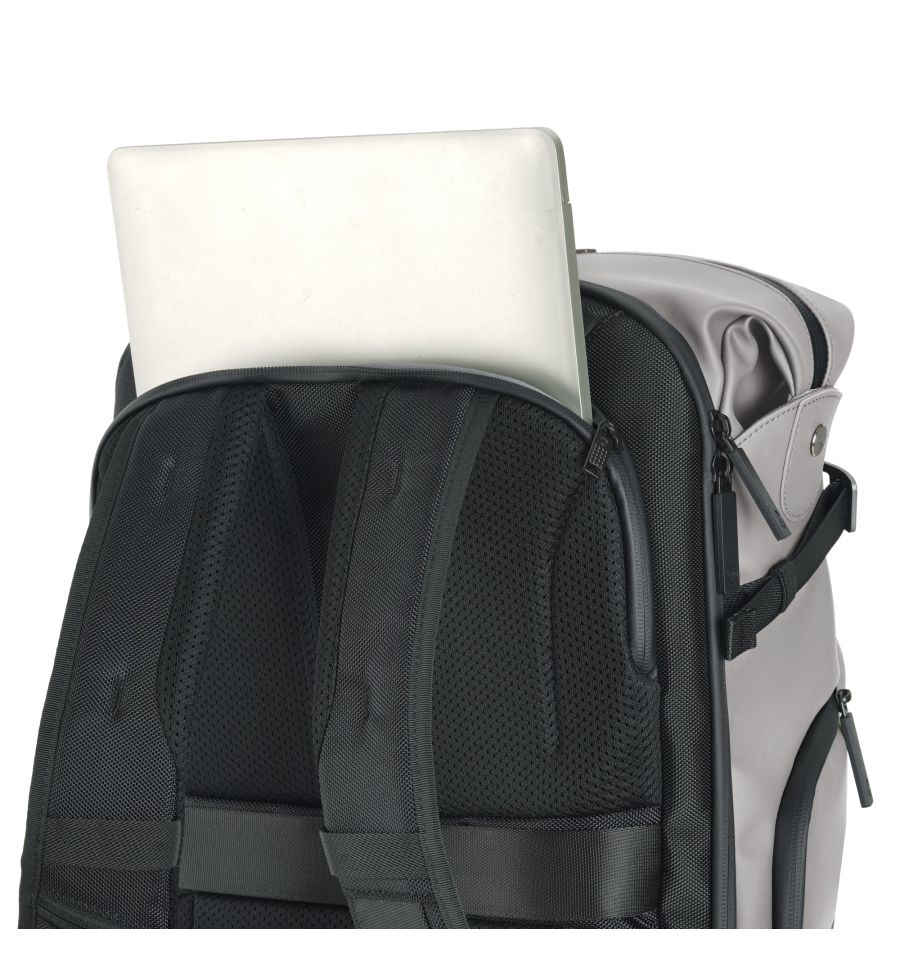 Esta mochila facilita el trabajo en movilidad con detalles inteligentes como su pasacables lateral para powerbank, el bolsillo oculto para rastreador GPS (compatible con AirTag o Tile) y un bolsillo flexible en las hombreras para el smartphone. El arnés ergonómico con correa de pecho ajustable asegura un transporte cómodo incluso con la carga completa.