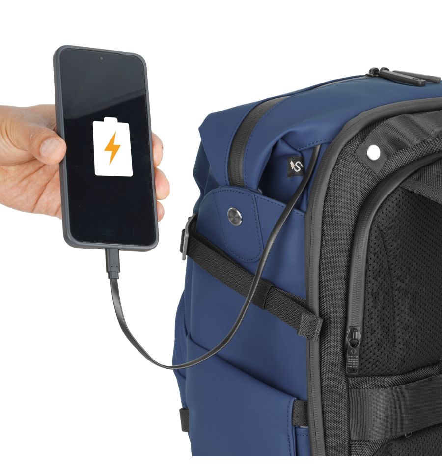 - Conectividad y Seguridad: Incorpora un pasacables para powerbank y un bolsillo oculto diseñado para rastreadores GPS como Apple AirTag o Tile.