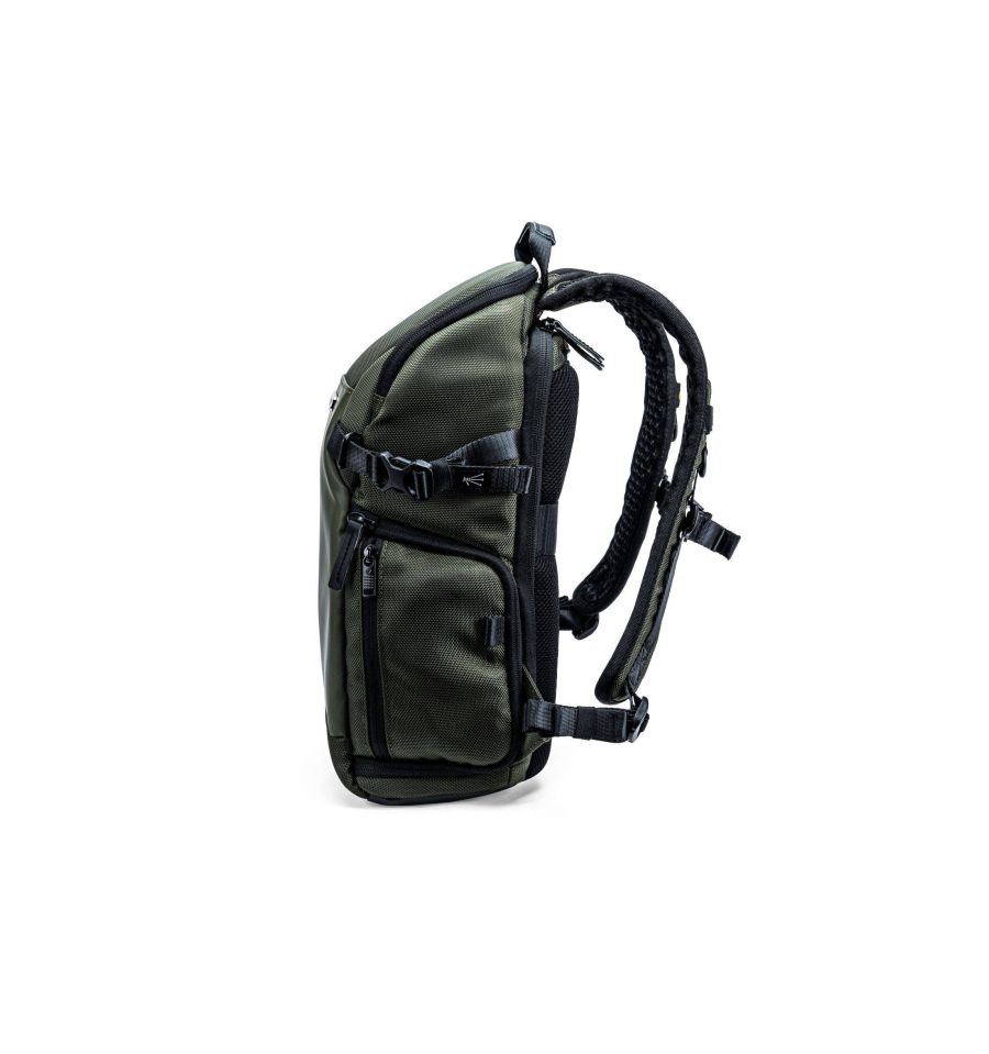 Los bolsillos internos y externos estratégicamente colocados te ayudan a organizar el resto de los accesorios esenciales. Capacidad para una tableta de 9,7" en la funda protectora del panel de apertura posterior. El bolsillo frontal de cremallera de longitud completa puede usarse para un portátil. Además de los puntos de acceso en ambos laterales, se despliega un bolsillo plegable para colocar un trípode o botella de agua en el lado que no se usará para la cámara. Un bolsillo trasero oculto asegura los objetos de valor, como la cartera o los documentos de viaje, cerca de su cuerpo, donde no pueden llegar las manos indiscretas.