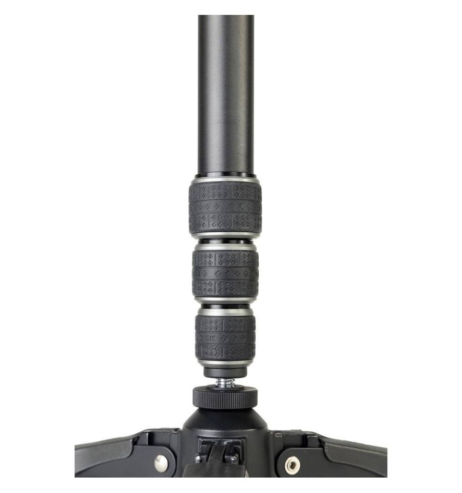 Monopié compacto de aluminio de cuatro secciones de 0.9" , con una longitud plegada de 20.5" y una altura extendida de