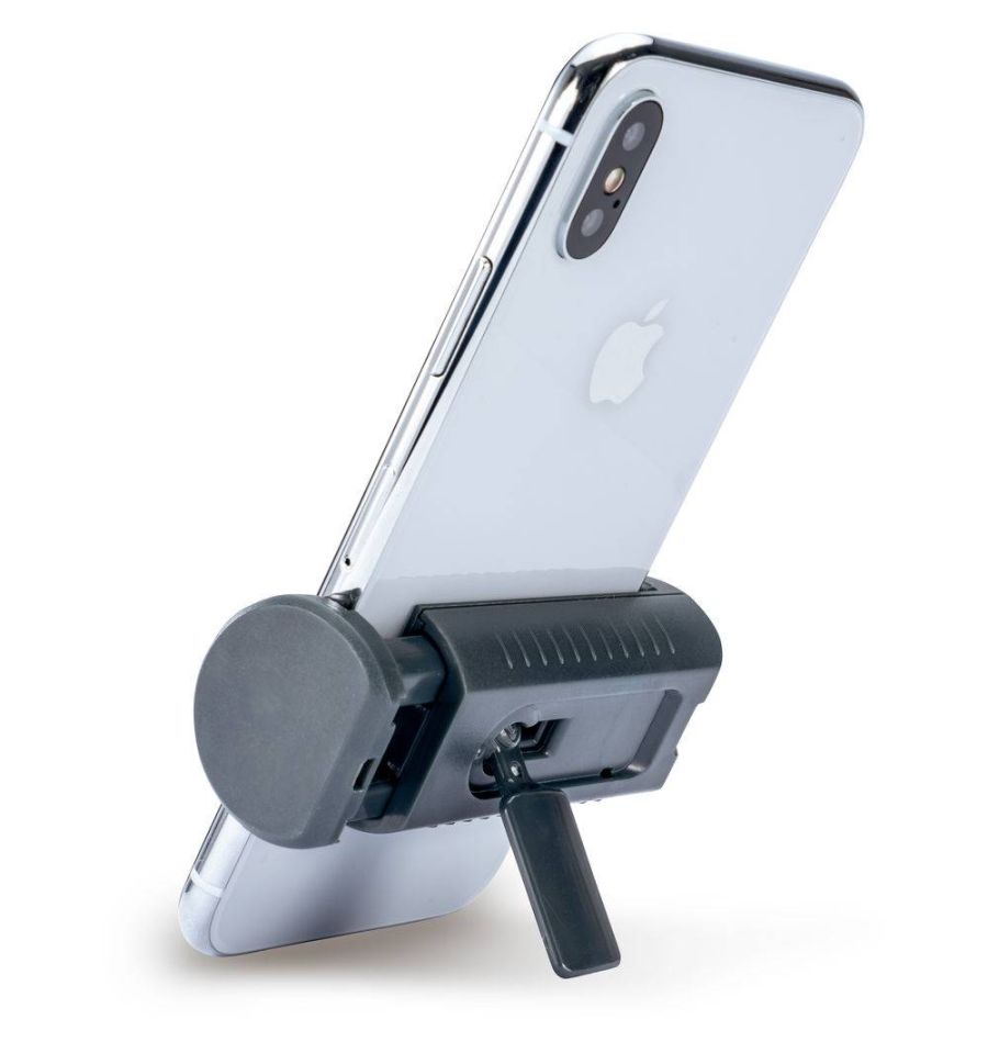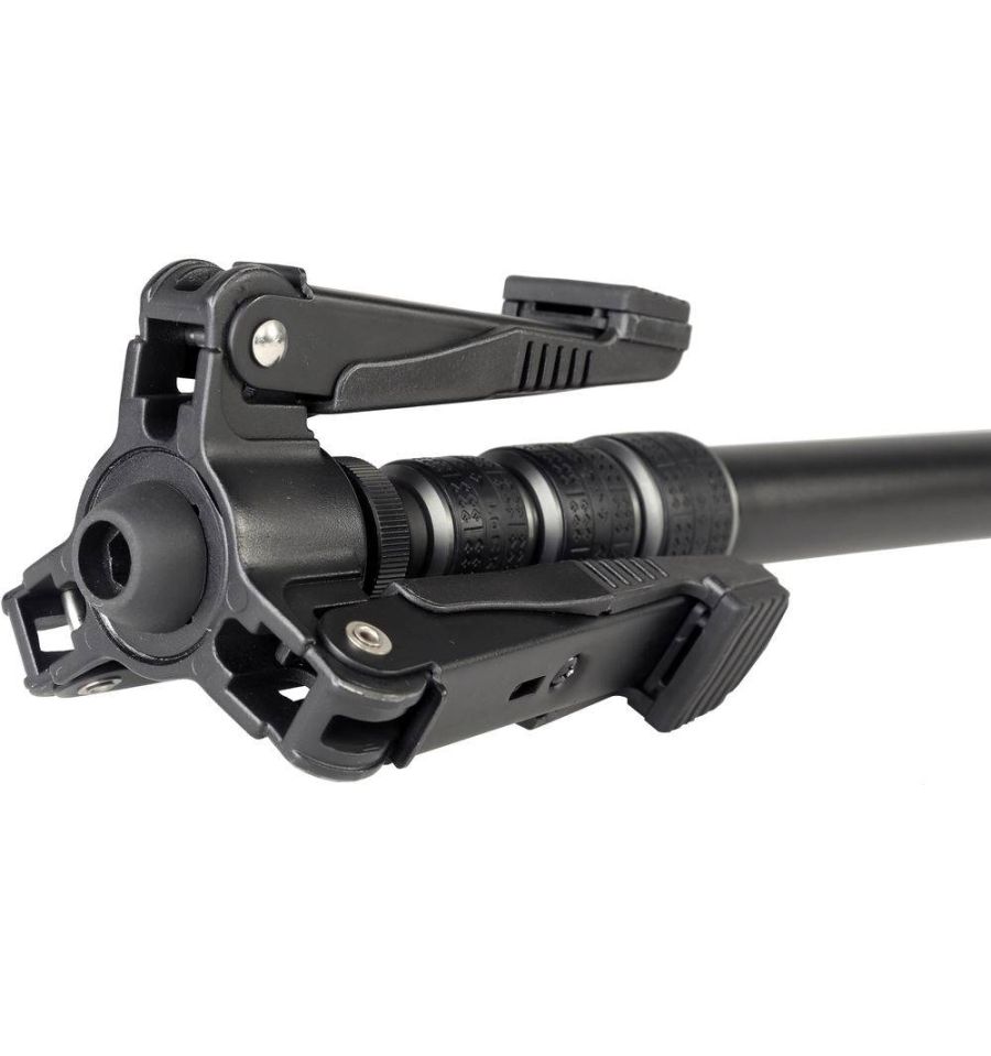 61 ". Montaje roscado de 1/4"-20 o use una rótula de bola pequeña opcional o una rótula de video compacta Tome fotografías con la cámara de su teléfono utilizando el soporte para teléfono inteligente y el control remoto Bluetooth Sistema de ajuste de ángulo en la base del monopié colocado sobre los pies plegables