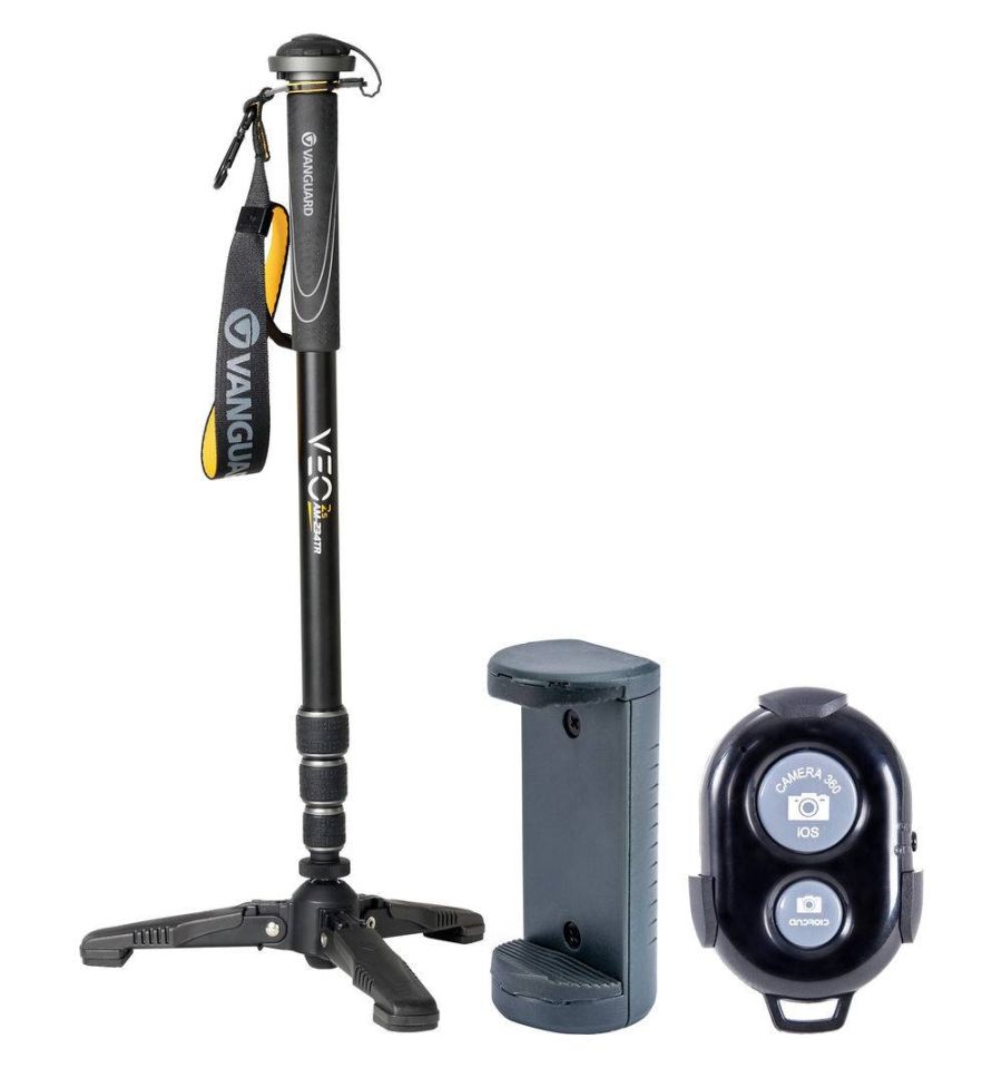Monopié de aluminio Vanguard VEO 2S AM-264TR con soporte para teléfono inteligente y control remoto Bluetooth