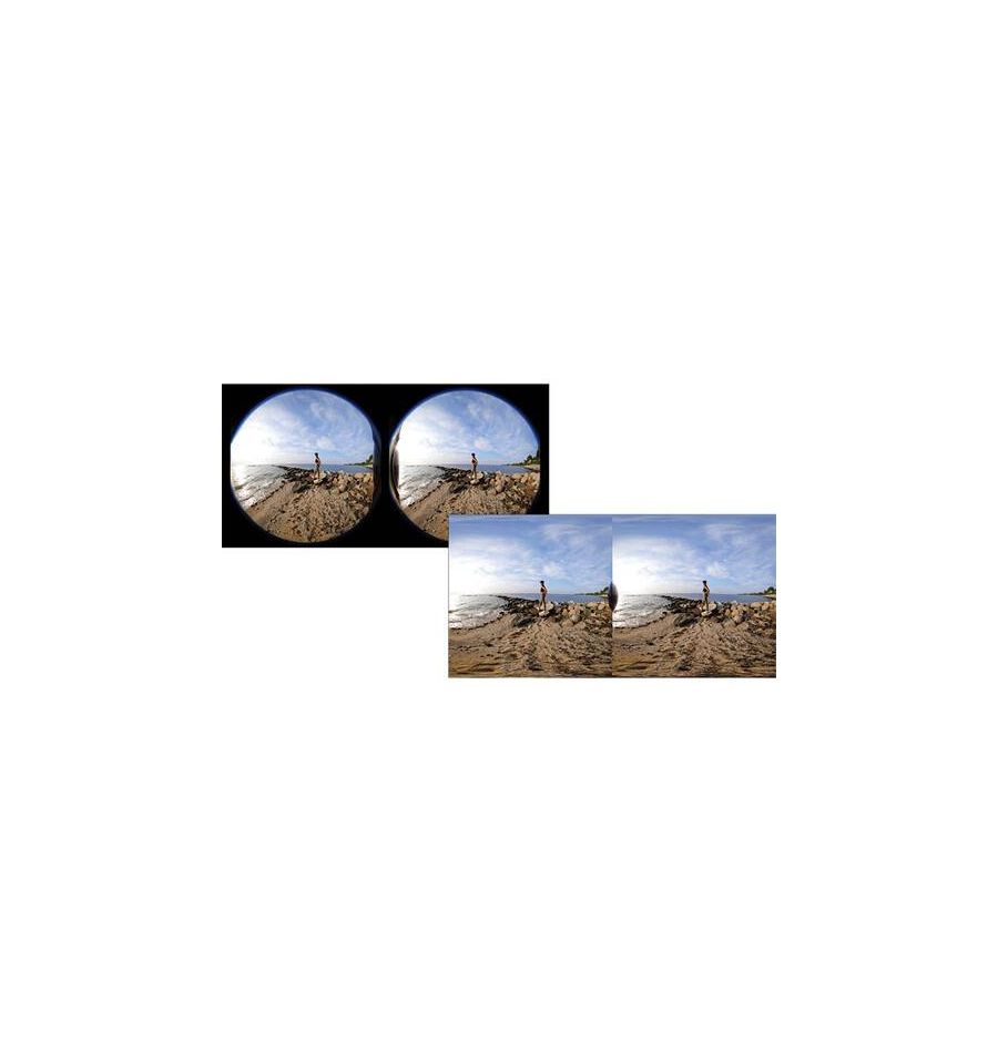 Con un campo de visión estereoscópico de 190°, dos imágenes de ojo de pez circulares desplazadas se sincronizan perfectamente y se graban lado a lado en un solo sensor Full Frame, preparadas para que el potente software EOS VR Utility2 o el complemento2 EOS VR de Canon las procese perfectamente para su edición final, sin necesidad de integración adicional.