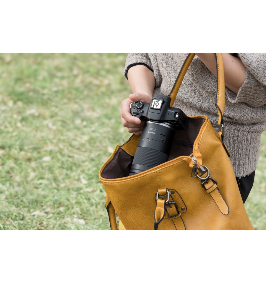 - Rango focal de 75-300mm en cámaras full frame del Sistema EOS R
