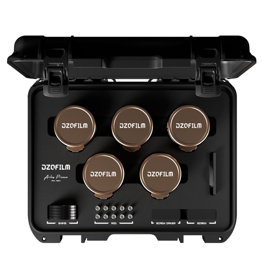 Usa el kit Arles Lustre T1.6 FF/VV Cinema Prime de 5 lentes de DZOFilm para crear imágenes cálidas y nostálgicas en fotograma completo, con distancias focales más amplias y más cerradas que complementan el set base de 4 lentes. Estas lentes de 14, 21, 40, 135 y 180 mm incluyen efectos de halo ámbar, cuerpos metálicos de estilo retro y aperturas máximas rápidas de T1.6/2.2/2.8.