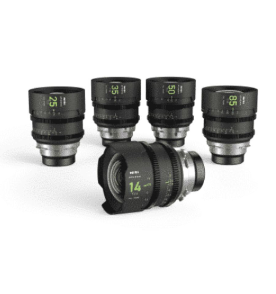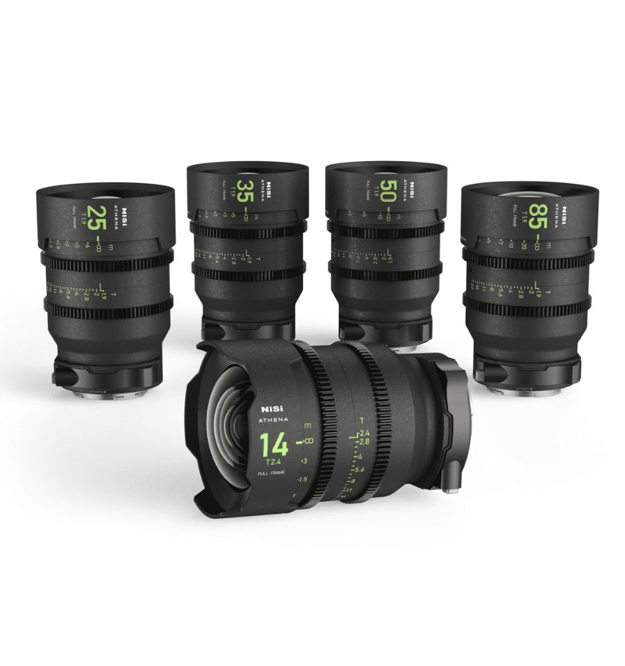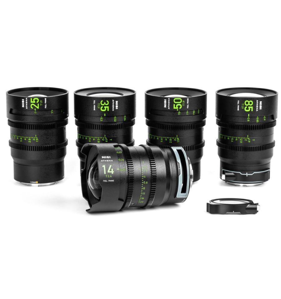 NiSi ATHENA PRIME con 5 objetivos de 14 mm T2.4, 25 mm T1.9, 35 mm T1.9, 50 mm T1.9, 85 mm T1.9.