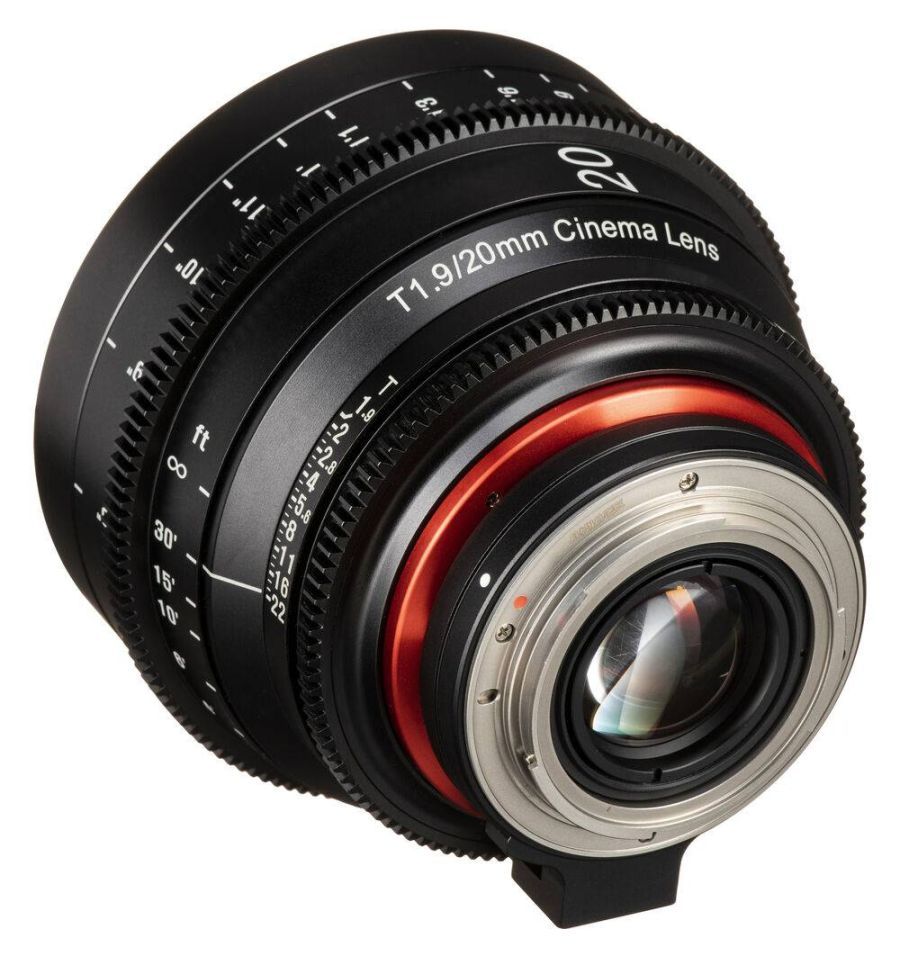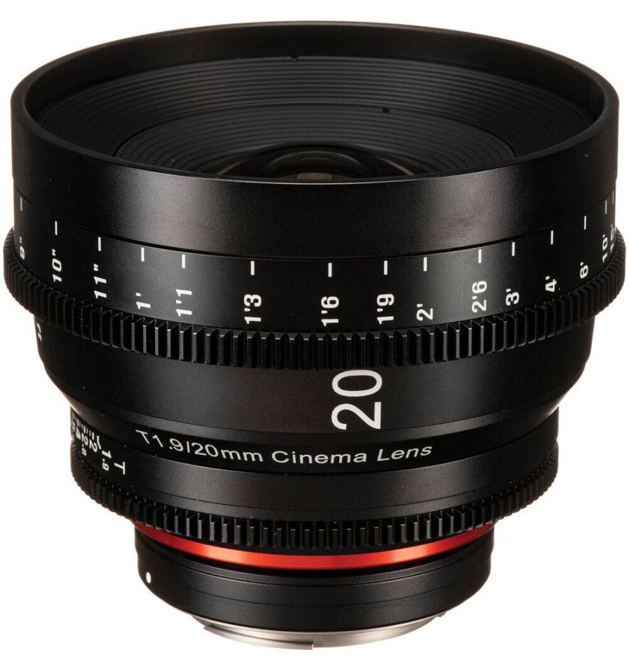 El objetivo Xeen 20 mm T1.9 está diseñado específicamente para su uso como objetivo de cine. Cuenta con un diseño de enfoque interno para que la lente no cambie de tamaño mientras se enfoca, esto minimiza la apariencia de respiración al cambiar el enfoque. Cada lente en el conjunto tiene una capa múltiple para un buen contraste, prevención de reflejos y coincidencia de color con un estándar de fábrica, lo que le permite ensamblar un conjunto con el tiempo con un cambio de color mínimo. Este objetivo de 20 mm proporciona lo que se considera un ángulo de visión amplio en cámaras de fotograma completo y un ángulo de visión correspondientemente más cerrado en cámaras de formato más pequeño.