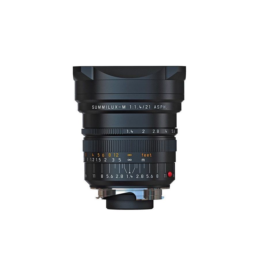El Summilux-M 1:1,4/21 mm ASPH. está compuesto por diez lentes en ocho grupos y cinco lentes separadas con dispersión parcial anómala. El resultado de este diseño, desarrollado y fabricado en Alemania, son correcciones excelentes del viñeteado y la distorsión. Un elemento flotante mantiene la altísima calidad de imagen incluso en distancias cortas. En el parasol rectangular patentado se pueden usar filtros de la serie VIII.