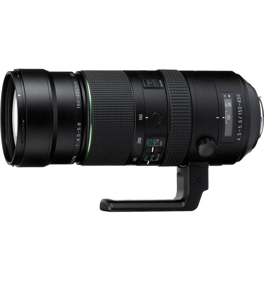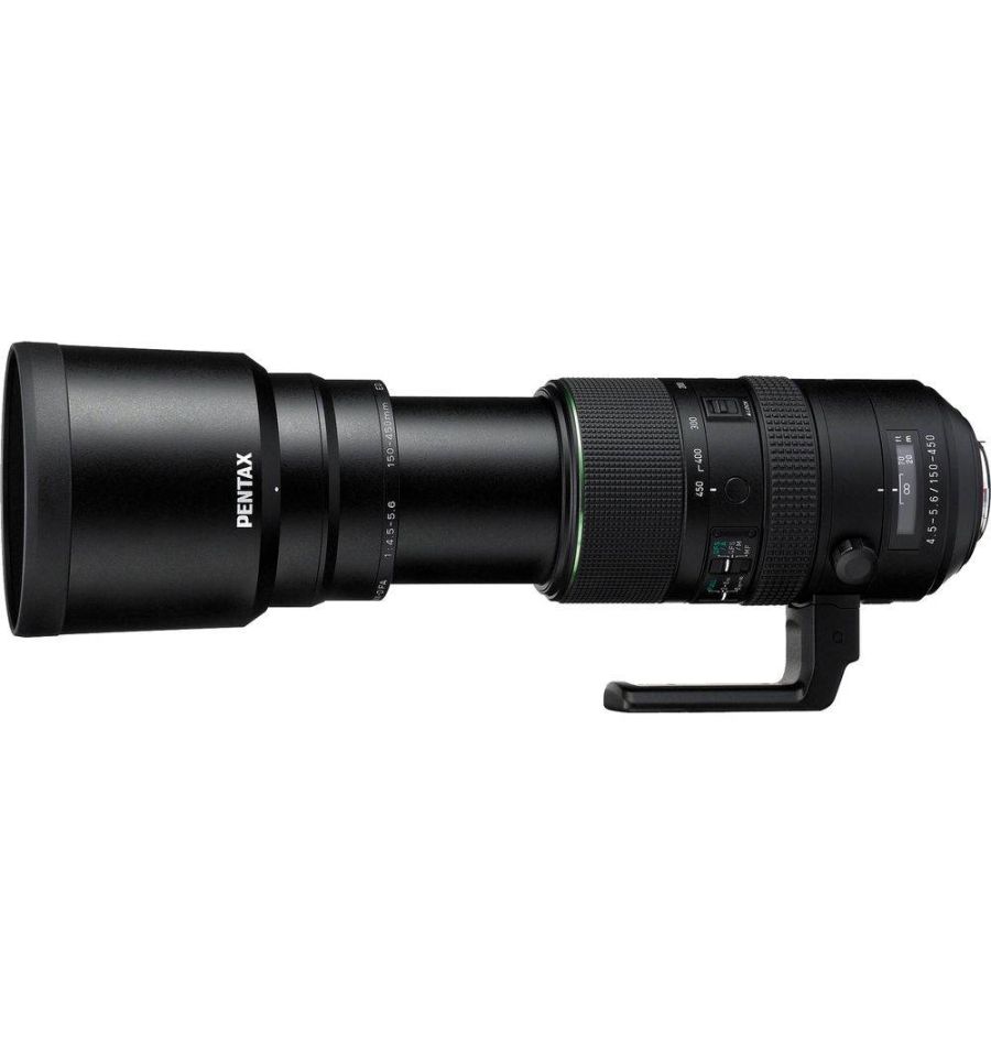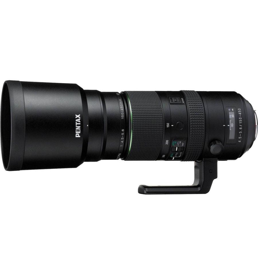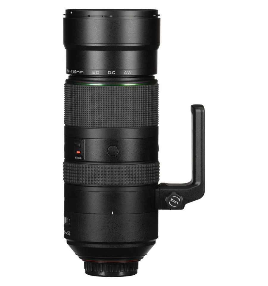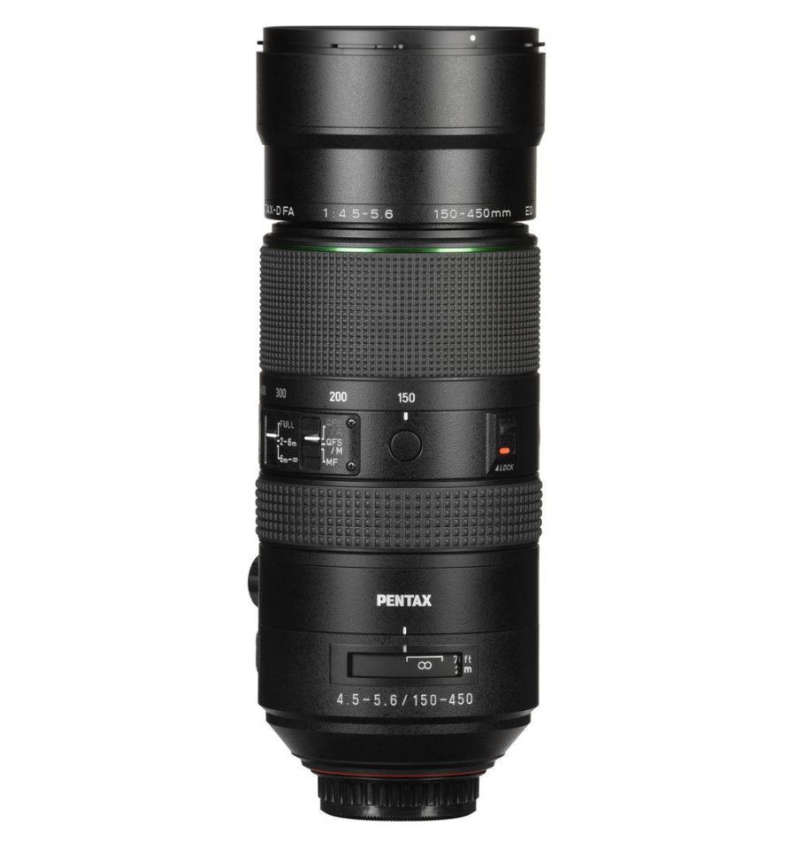 Un teleobjetivo con zoom de largo alcance para cámaras réflex digitales Pentax , el objetivo HD PENTAX D FA 150-450 mm f/4,5-5,6 DC AWcombina elementos de diseño óptico y mecánico avanzados con un extenso rango de longitud focal equivalente a 225-675 mm cuando se usa en cámaras APS-C. Los elementos de vidrio de dispersión extra baja se incorporan dentro de la construcción para minimizar las aberraciones y distorsiones cromáticas, así como para producir un alto grado de nitidez en todo el rango del zoom. También se han aplicado revestimientos HD a los elementos de la lente para reducir los reflejos y los destellos, y un revestimiento Super Protect también ayuda a proteger los elementos delantero y trasero del polvo, el agua y los aceites. Con respecto al enfoque, un motor de enfoque automático de CC logra un rendimiento rápido y silencioso y se ve acentuado por el sistema de enfoque de cambio rápido para cambiar entre el control AF y MF simplemente girando el anillo de enfoque. Diseñado para tiradores de vida silvestre, naturaleza y deportes,