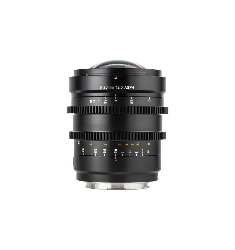 20 mm T2.0 es una lente de cine de gran angular portátil de enfoque completo y está especialmente diseñada para cámaras Sony E-mount.