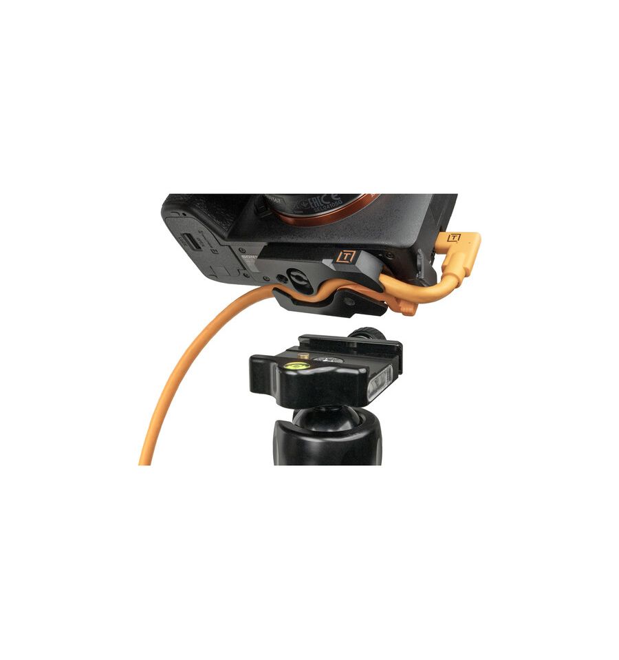 Una solución elegante para los fotógrafos atados, la placa TetherGuard LeverLock de Tether Tools asegura los cables de conexión a su cámara mientras gestiona su espacio. La placa negra compatible tipo Arca protege y simplifica la conexión cable-cámara al permitir conectar y retirar el cable sin quitar la placa. El cable pasa a través de un canal en S en la parte inferior de la placa, donde queda bloqueado en su lugar mediante el sistema de protección de 5 puntos del dispositivo. La placa tiene un tornillo de 1/4"-20 y una rosca de 1/4"-20, lo que la hace compatible con casi cualquier trípode y se adapta a cables de hasta 0,26" de diámetro.