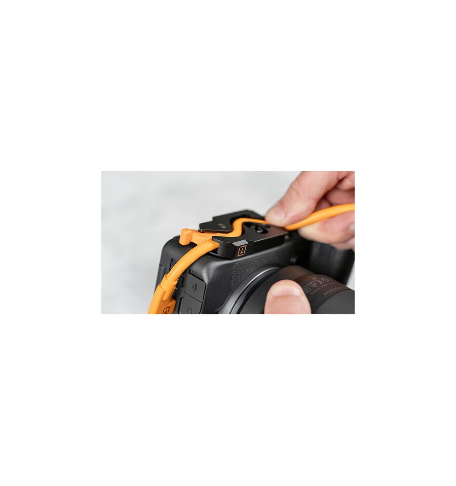 La placa TetherGuard® LeverLock™ te permite conectar o desconectar un cable de la cámara sin esfuerzo y sin tener que retirar la placa de la cámara, lo que facilita enormemente la instalación y el desmontaje.