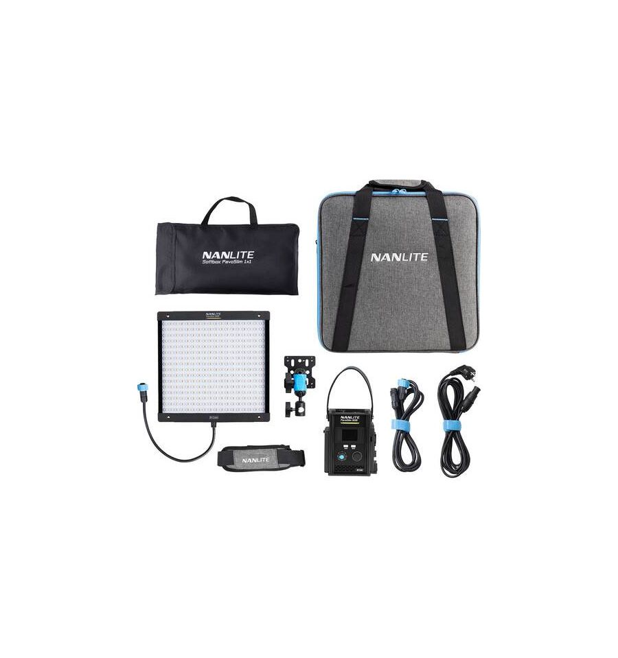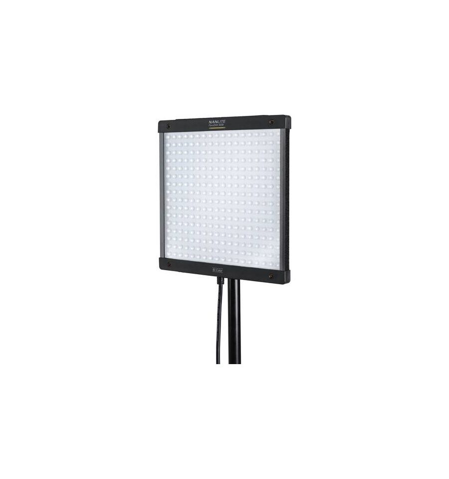 Panel de luz led Bi-color extremadamente fino y ligero con una potencia de 72W. que proporciona 8156 Lux@1m. Su diseño le permite posicionarse en espacios reducidos y su funcionamiento sin ventilador facilita el rodaje en entornos silenciosos. Alimentación a red o Batería V-mount o Sony NP-F. Ángulo de iluminación 60°, Atenuación 0 - 100%, CCT 2700K-6500K, CRI Promedio 95, TLCI Promedio 97, TM-30 Rf Promedio 95, TM-30 Rg Promedio 102, Control: A bordo, 2.4G, Bluetooth, NANLINK APP, DMX/RDM. Tamaño Panel: 306 x 300 x 18 mm, Peso del Panel: 0,90 Kg. Peso unidad de control: 1,37 kg.