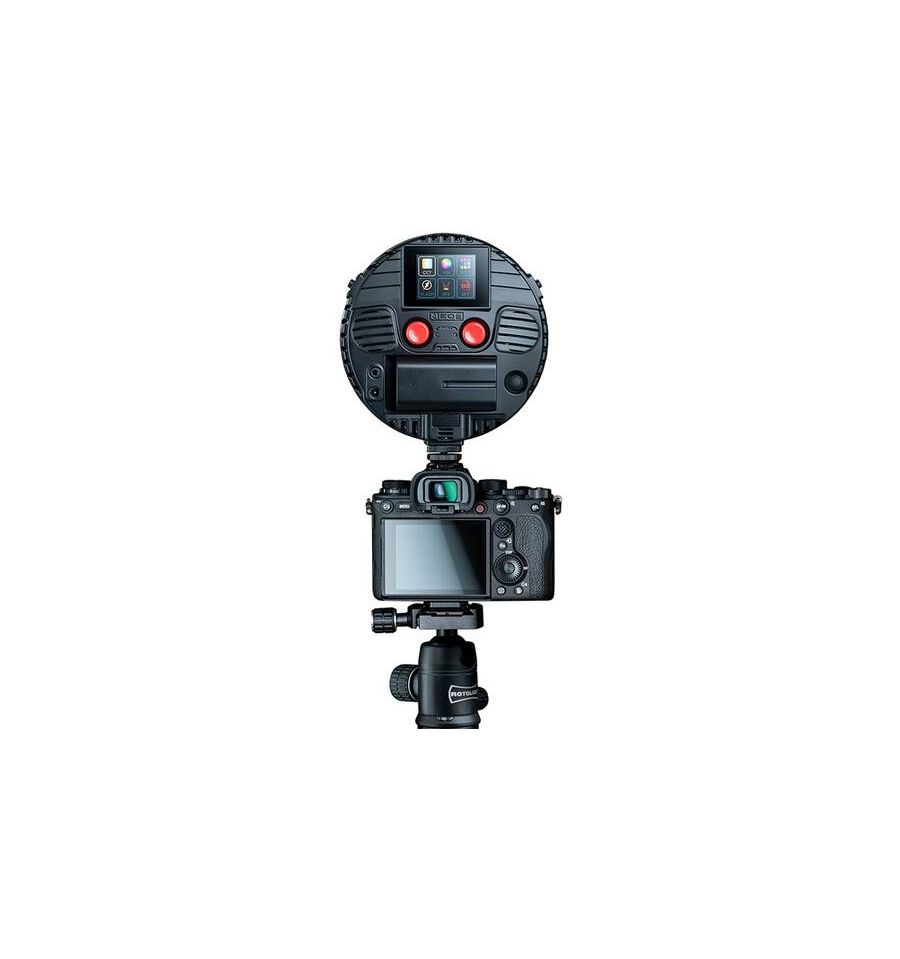 - Perfecto tanto para su uso sobre la cámara como fuera de ella, combinando una potente luz continua con un flash RGBWW de alta velocidad.